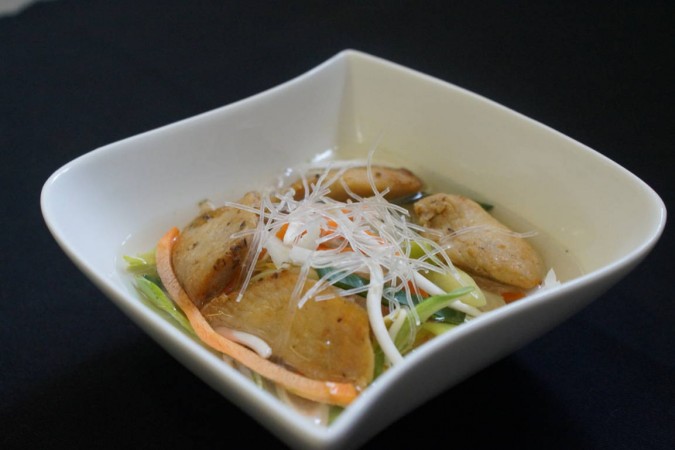 Gemüsebouillon mit Gemüsestreifen und Poulet
