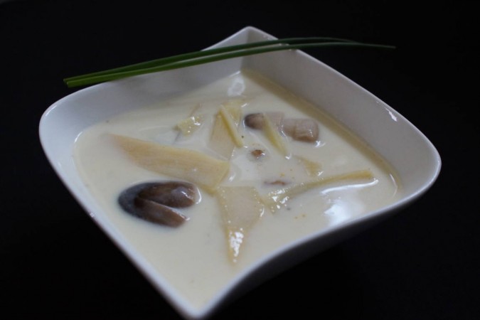 Thailändische Kokossuppe mit Bambussprossen und Poulet